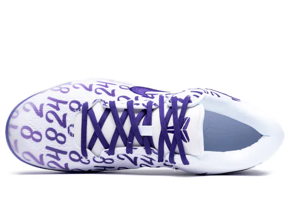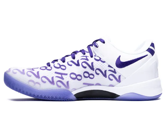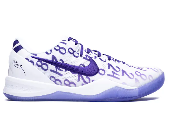 Kobe is the only player in NBA history to have two retired jerseys on the same team. He got there via unending focus on the game, and the Kobe 8 Protro "Court Purple" is inspired by his in-season flow. Numbers 8, 24, and 2—the jerseys worn by Kobe and his daughter Gianna—repeat boldly in Court Purple across the White mesh upper. The arched midfoot plate brings added support and stability, making the Kobe 8 Protro a mainstay at all levels of play. The design is finished off with an embroidered Swoosh, Kobe's signature, and his iconic "Sheath" logo (all in Court Purple) to honor his legendary mindset and continuing legacy.