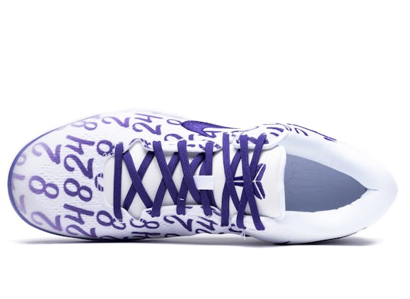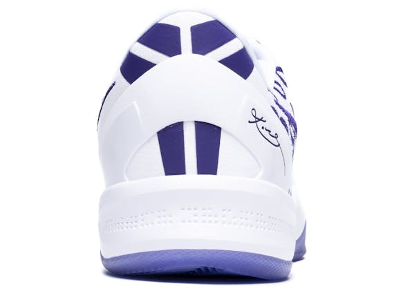 Kobe is the only player in NBA history to have two retired jerseys on the same team. He got there via unending focus on the game, and the Kobe 8 Protro "Court Purple" is inspired by his in-season flow. Numbers 8, 24, and 2—the jerseys worn by Kobe and his daughter Gianna—repeat boldly in Court Purple across the White mesh upper. The arched midfoot plate brings added support and stability, making the Kobe 8 Protro a mainstay at all levels of play. The design is finished off with an embroidered Swoosh, Kobe's signature, and his iconic "Sheath" logo (all in Court Purple) to honor his legendary mindset and continuing legacy.
